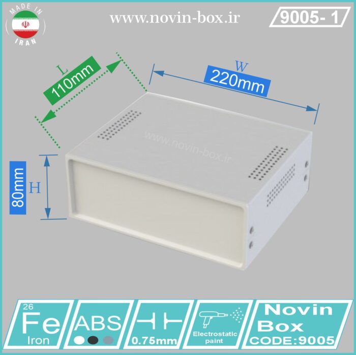 خانه جعبه الکترونیکی فلزی جعبه فلزی پانل پلاستیکی 9005 طول 110 میلیمتر ابعاد L110*W220*H80 (mm)