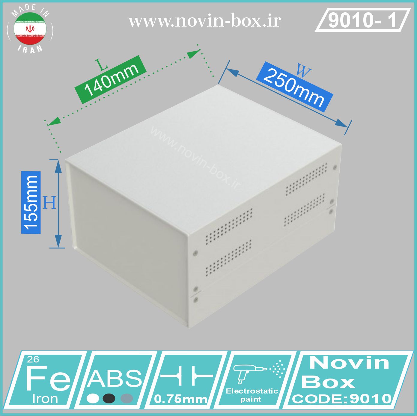 جعبه فلزی پانل پلاستیکی 9010 طول 140 میلیمتر ابعاد L140*W250*H155 (mm)